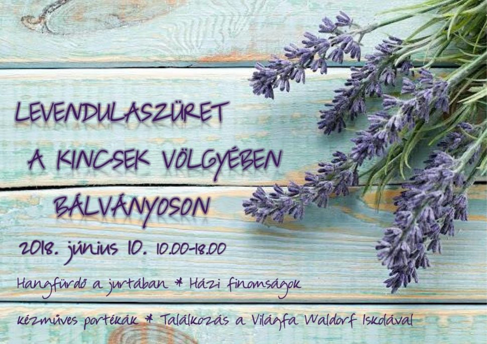 Június 10, Június 23, Június 24 10:00 – 18:00 Kedves Levendula Kedvelők! Szeretettel meghívunk benneteket ismét a völgybe, de most levendulázni fogunk 🙂 A kijelölt napokon lehetőségetek lesz pihenni, kirándulni…sok levendulát szedni…. Ismét várnak kézműves termékek, házi finomságok. Aki szívesen megismerné iskolánkat annak erre is lehetőséges lesz.