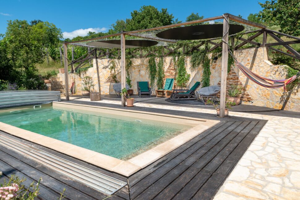 Bokrokból álló labirintus, 250 különböző fajtából álló gyümölcsfa ültetvény, medence, tábortűz, teázó, levendulaültetvény.